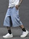 Manfinity EMRG Men's Pockets Loose Wide Leg Casual Versatile Denim Shorts Grey Jean Shorts Men