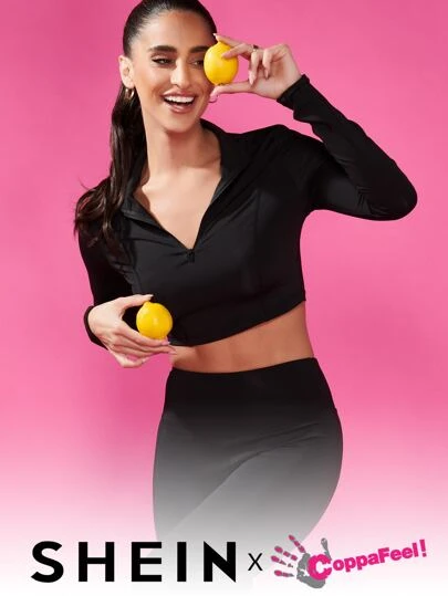 Easithlete 2pcs Fitness Yoga Set Sports Suit Half Zip Top Tummy Control Leggings - Black - View 1