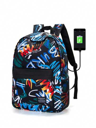 14 Inch Men Letter Patch Decor Charging Port Design School Bags School Bag Laptop Bag Book Bag Rucksack Shoulder Bag Sport Bag College Bag Senior Student College Student Junior Student Leisure Print Letter Print Graffiti Print Backpack Christmas Holiday Thanksgiving Gifts Chest Bag Hip Bag Valentine Day Holiday Essentials Camping Travel Bag Stickers Summer Back To School Valentines Gifts Laptop Case The Sporty Life Summer Bag Spring Break Vacation Bag Pack Backpacks Travel Must Haves Large Bag School Supplies School Backpack - Multicolor - View 1