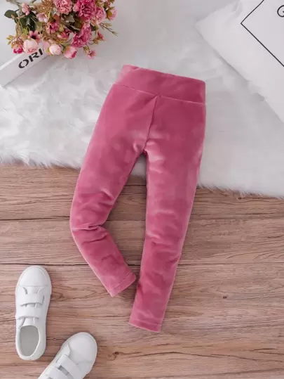 SHEIN Toddler Girls Solid Leggings - Hot Pink - View 1