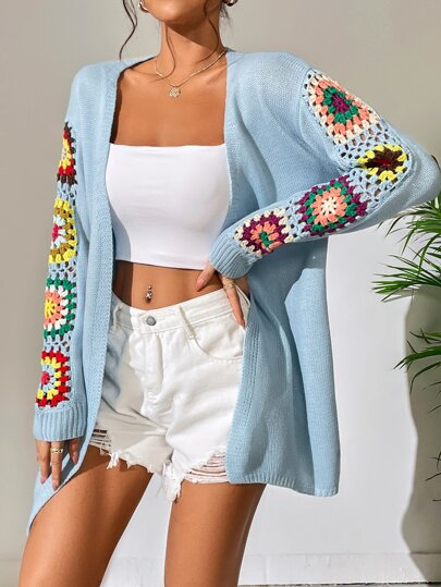 SHEIN WYWH Floral Pattern Drop Shoulder Duster Cardigan - Blue - View 1