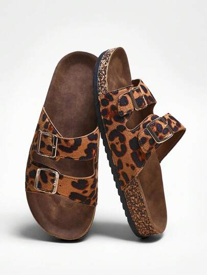 SHUZIA Women Shoes Double Buckle Cork Footbed Slide Sandals Women White Pu Fashion Flat Sandals - Multicolor - View 1