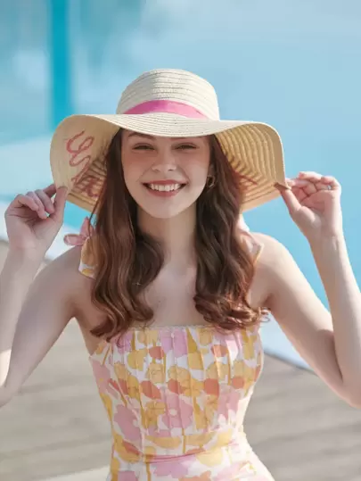 LEAJOURNO. 1pc Women's Sun Hat With Wide Brim, Korean Style, Beach Vacation Essential, Net Celebrity Style, Fresh And Versatile - Khaki - View 1