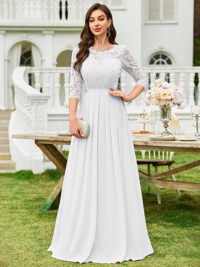 MIUSOL Floral Lace Chiffon Ruffle Hem Maxi Dress, Elegant Ladies Gown, Formal Dress, Suitable For Wedding Guest, Graduation Ceremony, Gala Dinner And Other Occasions - White - View 1