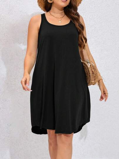 SHEIN LUNE Plus Solid Tank Dress - Black - View 1