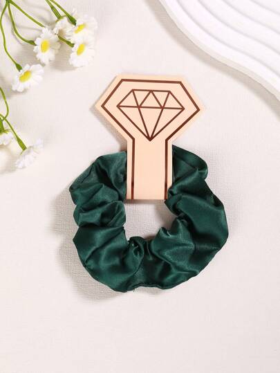 1pc New Fabric Hair Scrunchies, Satin Texture Elastic Hair Ties, Solid Color Hair Bands For Women Casual,Gym,Hair Accessories,Ponytail ,Hair Rope - Green - View 3