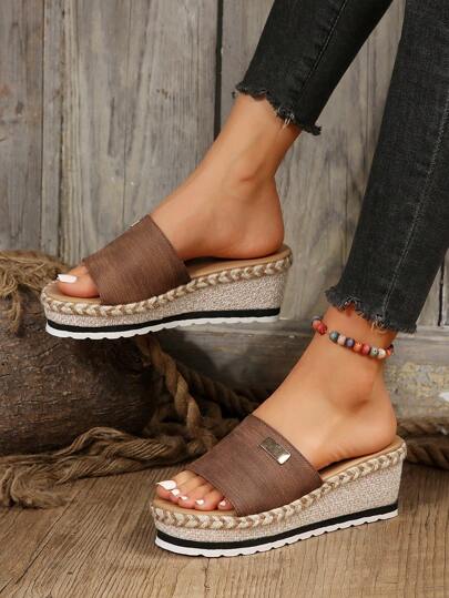 Women's Wedge Heel & Thick Sole Slippers - Coffee Brown - View 1
