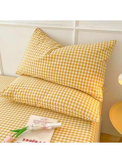 Lemon Check Polyester Pillowcase Set Soft Bright Yellow Gingham Bedding Cover 48x74cm 50x75cm 20x30in For Cozy Home Decor - Pudding Huangge - View 1