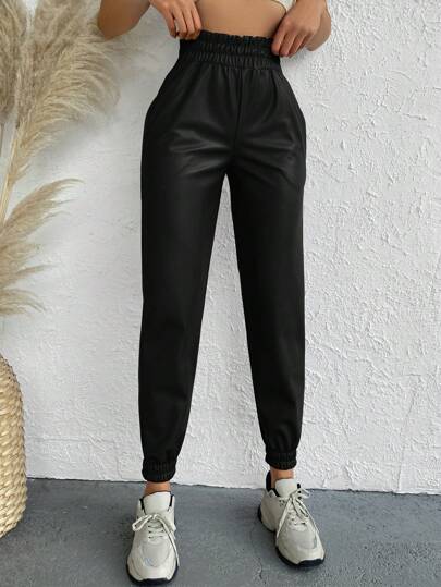 EURMUSE Paperbag Waist Sweatpants - Black - View 1