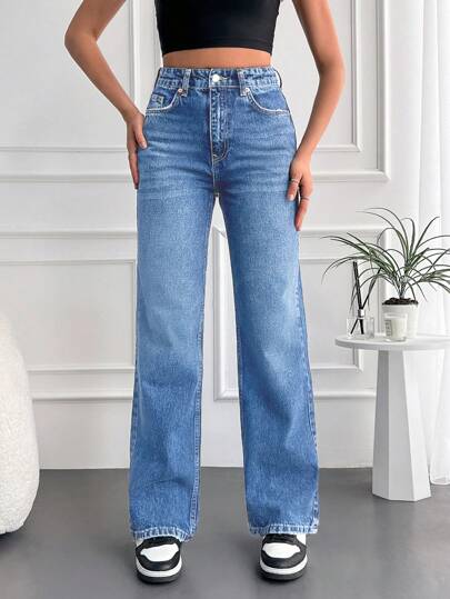 RueChic Women's Whisker Pocket Wide Leg Jeans - Baby Blue - View 1