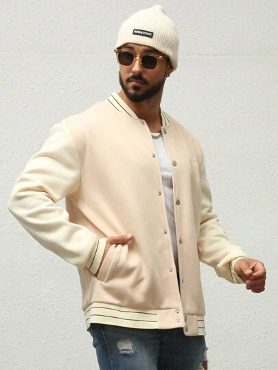 Manfinity Homme Men Plus Letter Graphic Colorblock Striped Trim Varsity Jacket - Apricot - View 1