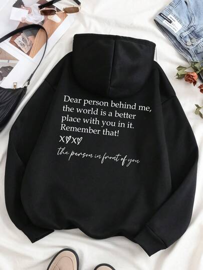 INAWLY Women's Slogan Print Hooded Drop Shoulder Sweatshirt Dear Person Behind Me, The World Is A Better Place With You In It Remember That! The Person In Front Of You Graduation,Back To School Outfits,Graduation,Teacher Outfits For Women,Back To School Pullover Fall Outfit - Black - View 6