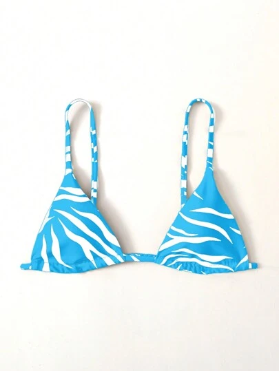 SHEIN Swim Summer Beach Bikini Top, Random Print - Blue and White - View 1