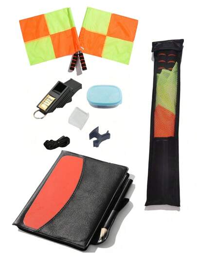 1Set Soccer Referee Flag Whistle Set Professional Football Red Card And Yellow Card Kit Sport Training Useful Referee Tool - Multicolor - View 1
