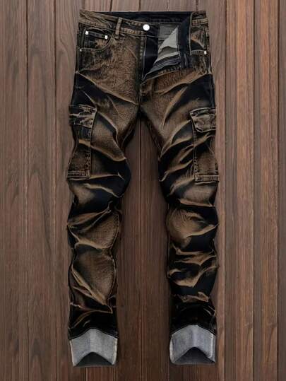 Men's Distressed Multiple Pocket Denim Jeans - Multicolor - View 1