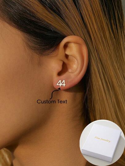 A Pair Of Minimalist Lucky Number Custom Earrings, Personalized And Unique Tag Earrings, Fashionable Wedding Beach Vacation Jewelry, The Best Gift For Her, Minimalist Elegant Style, Neutral Style Birthday Accessories, Fashionable Christmas Gifts For Family, Simple And Classic, Suitable For Daily Wear And Gift Giving, Mother's Day Jewelry, Suitable For All Seasons - Silver - View 1