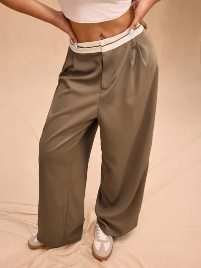 Forever 21 Plus Size Women Fashion Casual Color Block Straight Leg Pants - Camel - View 1