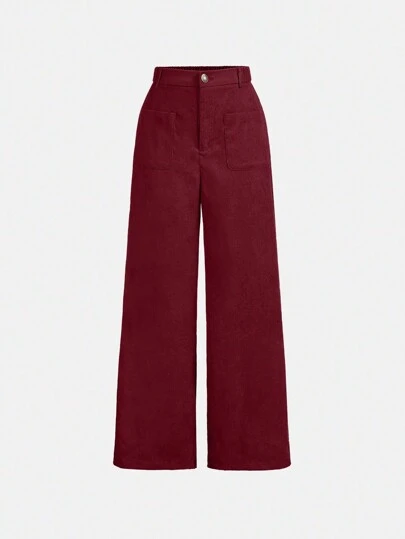 SHEIN Girlism Tween Girl  Casual Loose Straight Leg Pants With Pockets - Burgundy - View 1