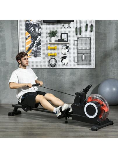SPORTNOW Water Rowing Machine, Foldable Rowing Machine For Home Gym, 150kg Weight Capacity Portable Rower With Wheels, LCD Monitor And Tablet Holder For Cardio Training, Black - Black - View 1