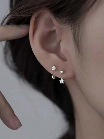 1 Pair Of Simple Fashion S925 Sterling Silver Diamond Flash Diamond Earrings With Bone Buckle Earrings For Women - Silver - View 3