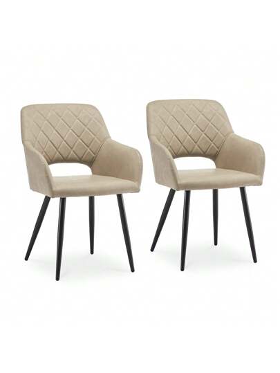 CLIPOP Dining Chair Set Of 2 Faux Leather Upholstered Kitchen Counter Chair With Armrest And Metal Legs Living Room Reception Chairs For Dining Room Lounge Bedroom Or Office - Apricot - View 1