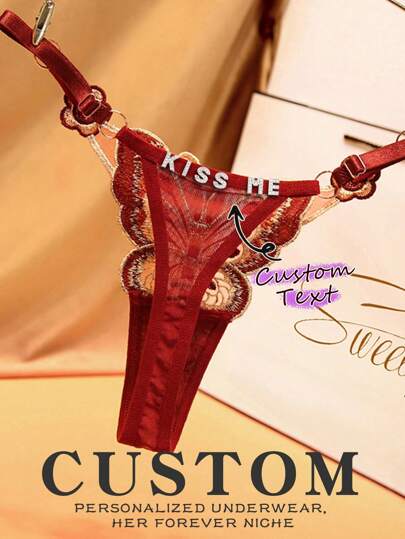 Butterfly Element Adjustable With Women's Plus Size Underwear,Sexy Lingerie Underwear,Custom Name Sexy Women's Panties, Personalized Crystal Letter Lingerie Low Waist Underwear, Custom Sexy Panties For Women, Diy Shiny Letters Name Panties, Custom Wedding Shower Gifts, Undies For Bride, Anniversary Gift, Valentine Gift, Birthday Gift, Wedding Gift, Gift For Her/Girlfriend/Wife. Christmas. - Burgundy - View 1