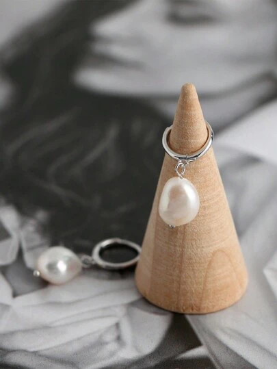 1 Pair 925 Sterling Silver Earrings With Natural Baroque Pearl, Simple & Versatile Freshwater Pearl Earrings Suitable For Daily Wear For Women - Silver - View 1