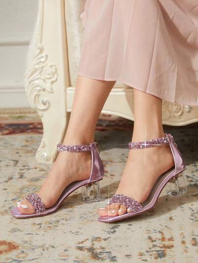 CUCCOO TILAWA Women's Fashion Crystal High Heel Glass Rhinestone Decor High Heel Sandals, Suitable For Going Out, Banquets & Events Spring Shoes Spring Break Easter Prom Heels - Pink - View 1