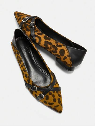 CUCCOO BIZCHIC Women's Leopard-Print Brown Crossband Silver Buckle Decor Casual Flat Sandals Spring Shoes Spring Break Easter - Brown - View 1