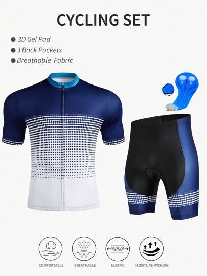 Manfinity Sport Corelite Summer Quick Drying Breathable Road Bike Riding Set, With Shoulder Straps, Classic Solid Color, Unmarked Sportswear For Men - Blue - View 1