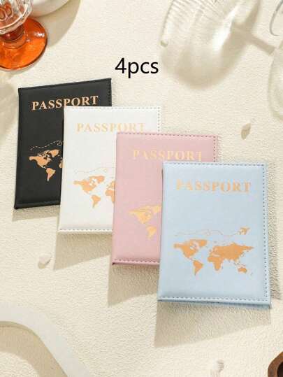 4 Pcs Travel Passport Holder Travel Document Storage Set Creative Passport Holder And Ticket Clip, Fashionable Passport Cover For Protecting During Holiday Travels Toiletry Bag Wash Bag Toiletry Travel Bag Makeup Storage Beach Beach Bag Vacation Holiday Essentials School Supplies Travel Essentials Ladies For College Dorm Bathroom Back To School Accessories - Multicolor - View 1