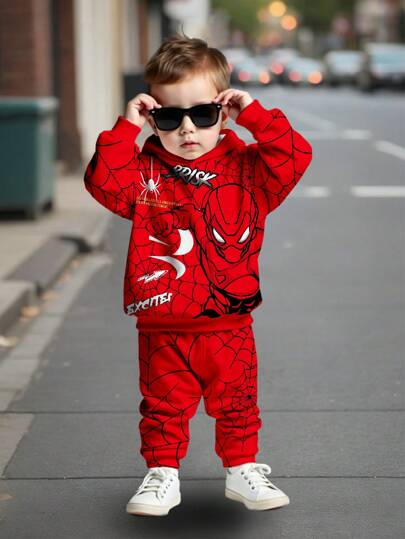 SHEIN Baby Boy Casual Loose Comfortable Soft Knit Hoodie Sweatsuit - Multicolor - View 1