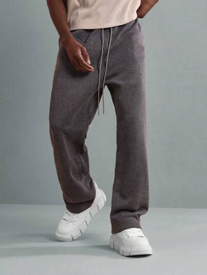 SUMWON Athletic Loungewear Sweatpants Classic Straight Fit Casual Athleisure Jogger Pants With Drawstring Elastic Waist Comfort Fleece Winter Workout Training Pants - Dark Grey - View 1
