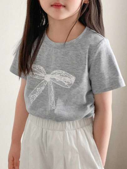 Dazy Kids Girl Casual Bow Print Short Sleeve T-Shirt,Girls Summer Outfits - Grey - View 1