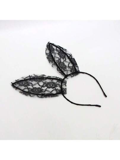 1pc New Lace Rabbit Ear Headband Cute Sexy Headpiece Hair Clip Veil Headdress Accessory Halloween - Black - View 1