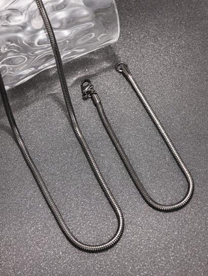 2pcs Stainless Steel Bracelet And Necklace Set - Black - View 1