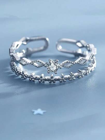 Fresh And Sweet Wisp Double-Layer Lace Diamond Ring Sterling Silver Opening Ring - Double Lace Ring - View 1