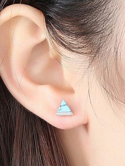 1 Pair Turquoise Triangle Stud Earrings, S925 Sterling Silver Platinum Plated Fashion Luxury Ear Studs, Unisex - Silver - View 4