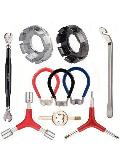 4-Piece Stainless Steel Bicycle Spoke Wrench Set - Silver Outdoor Recreational Bicycle Repair Tool, Line Adjustment Tool, Banner Wrench - Red - View 9
