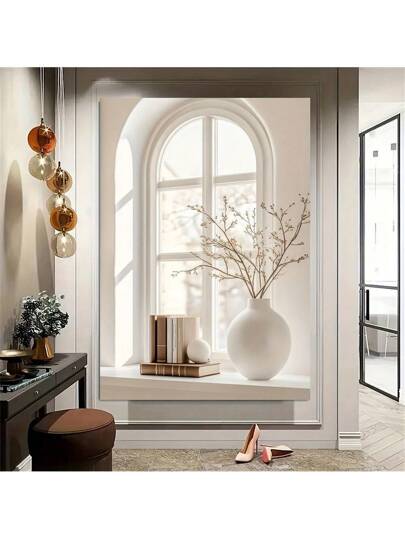 1pc Modern Floral Vase Art Canvas Poster - Unframed White Wall Decor For Living Room And Bedroom, Peaceful Window View Design With Spring/Winter Theme, Lovely Room Decoration Gifts Birthday Graduation - Multicolor - View 8