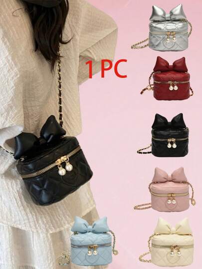 1pc Niche Design High-Grade Diamond Bucket Bag Girl'S Western-Style Chain Bag Ins Style New Fashion Small Fragrance Style Mini Pearl Love Children'S Lipstick Crossbody Accessories Cosmetic Bag Small Bag For Girls Sweet And Cute Bow On The Run Princess Western-Style Chain Bucket Bag Shoulder Crossbody Bag - Bow Bucket Bag - View 1