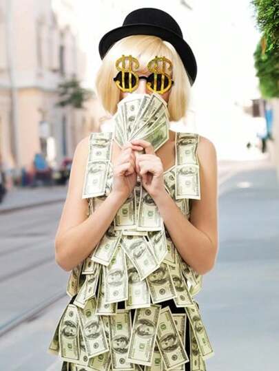 1pc-Sunglasses | Dollar Logo Glasses | Pimp Clothing Accessories | Gangster Clothing Glasses | Gold/Silver.The Golden Doll Logo Frame With Black Accents Is Perfect For Costume Parties And Fun Dressing Occasions. - Multicolor - View 5