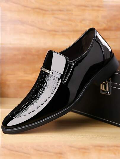 Men's Formal Pointed Toe Shiny Leather Dress Shoes, New Korean Version British Style Soft Bottom Casual Shoes - Black - View 1