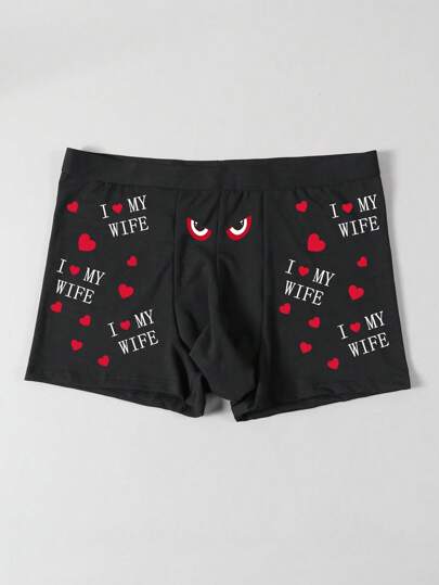 Men's Funny Eye, Letter & Heart Printed Breathable Elastic Waist Daily Briefs With Elephant Trunk Pouch - Black - View 1