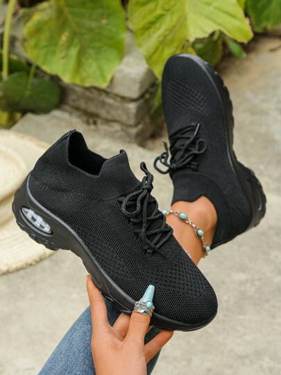 Women's Casual Breathable Shock-Absorbing Walking Shoes, Fashionable Wedge Thick-Soled Sneakers - Black - View 1