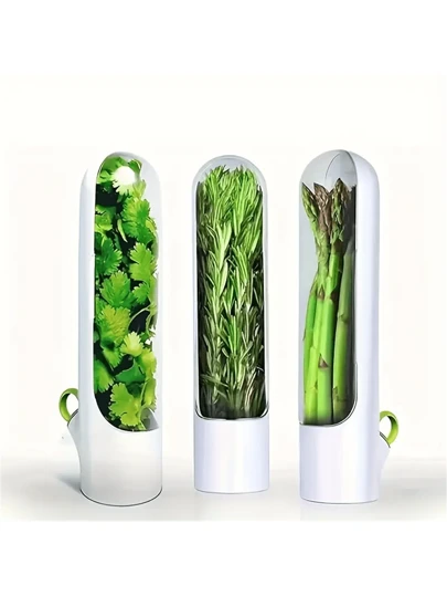 SOKANY 1pc Transparent Vegetable Preservation Box, Herb Preservation Box, Refrigerator Preservation Box. Transparent Shell, Plastic Material, No Battery Required. Can Be Filled With Water, Shelf Life 3-5 Days. Suitable For Preserving Cilantro, Asparagus, Cucumber, Carrots And Other Ingredients, A Must-Have Kitchen Tool. - White - View 1