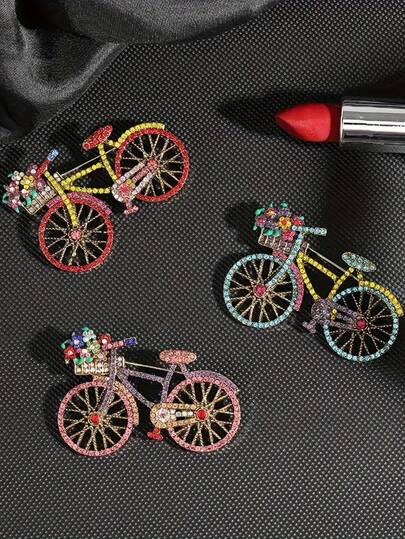 Xiacheng 1pc Elegant Vintage Bicycle Brooch With Sparkling Floral Basket, Hypoallergenic Copper Alloy Pin For Parties & Casual Wear - Bike - View 11