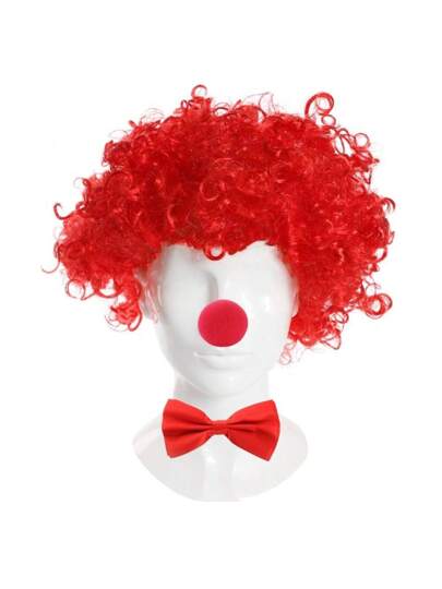 Red Nose Clown Accessory Set – Wig, Feather Boa, Fishnet Gloves, Tutu & Leg Warmers - Red - View 1