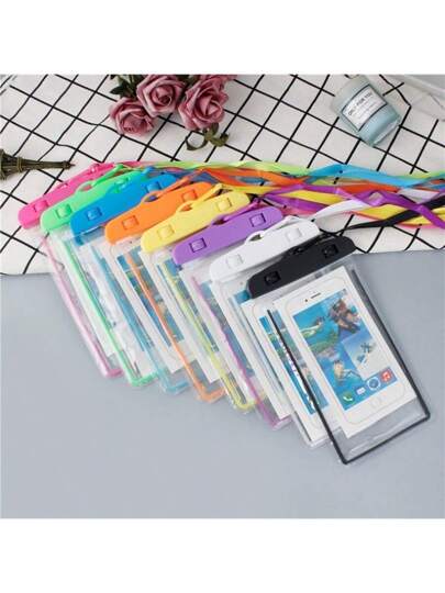 1pc Waterproof Phone Pouch, Transparent Rainproof Halter Sealed Bag, Touch Screen Underwater Phone Case, Random Color - Multicolor - View 1