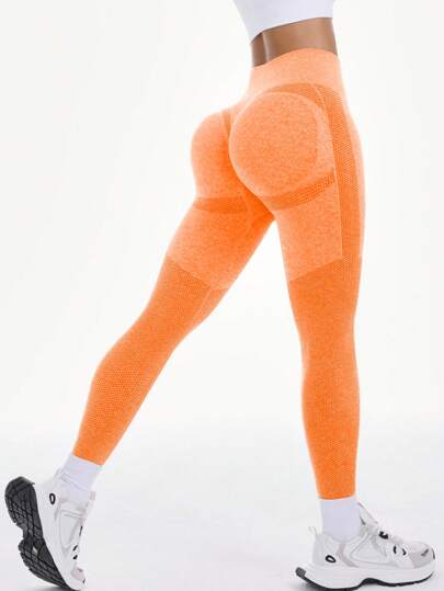 SHEIN Sports High Waisted Seamless Leggingsfor Women - Tummy Control Soft Butt Lifting Yoga Pants For Workout Athletic Running Cycling Yoga Pickleball Exercise Casual - Orange - View 1